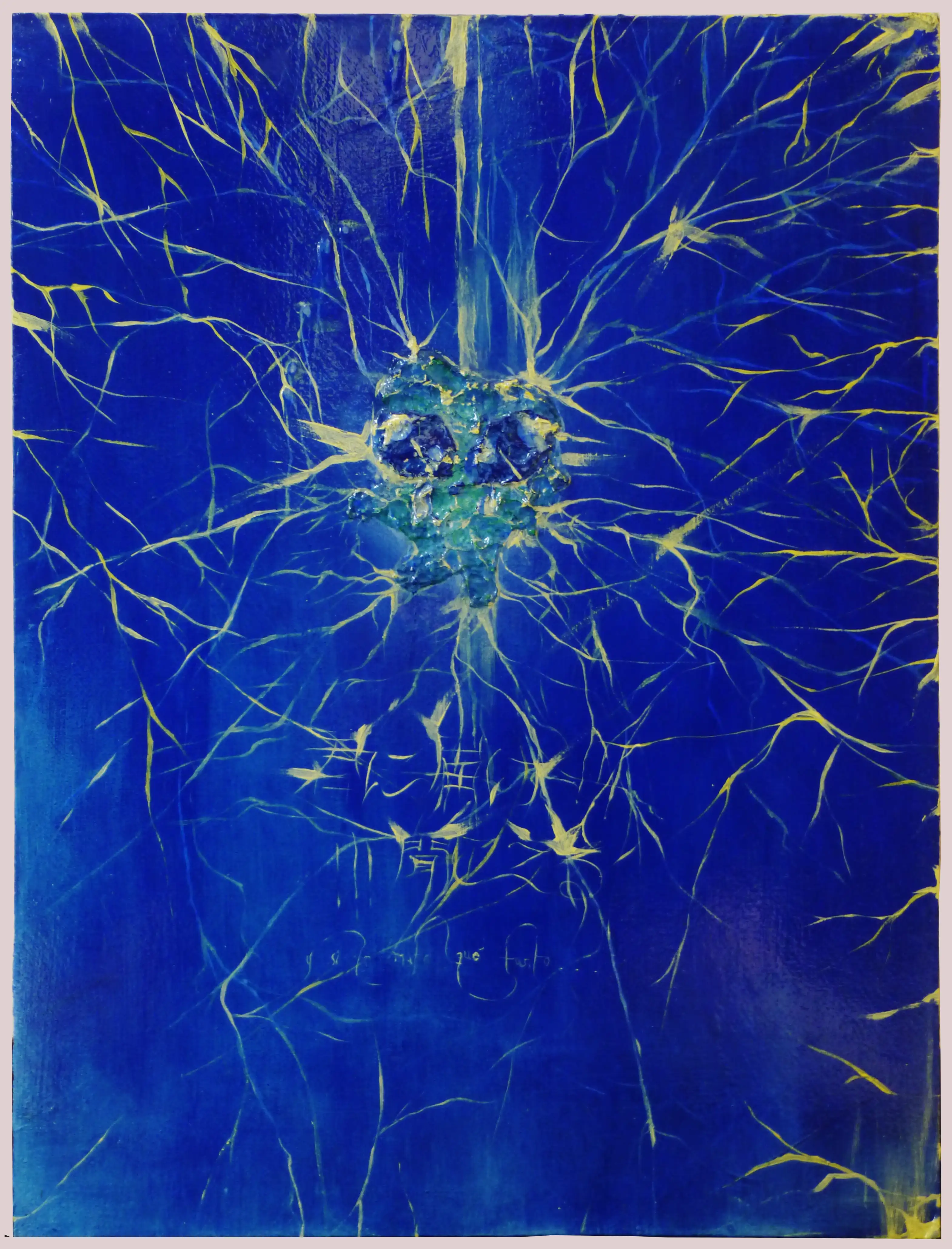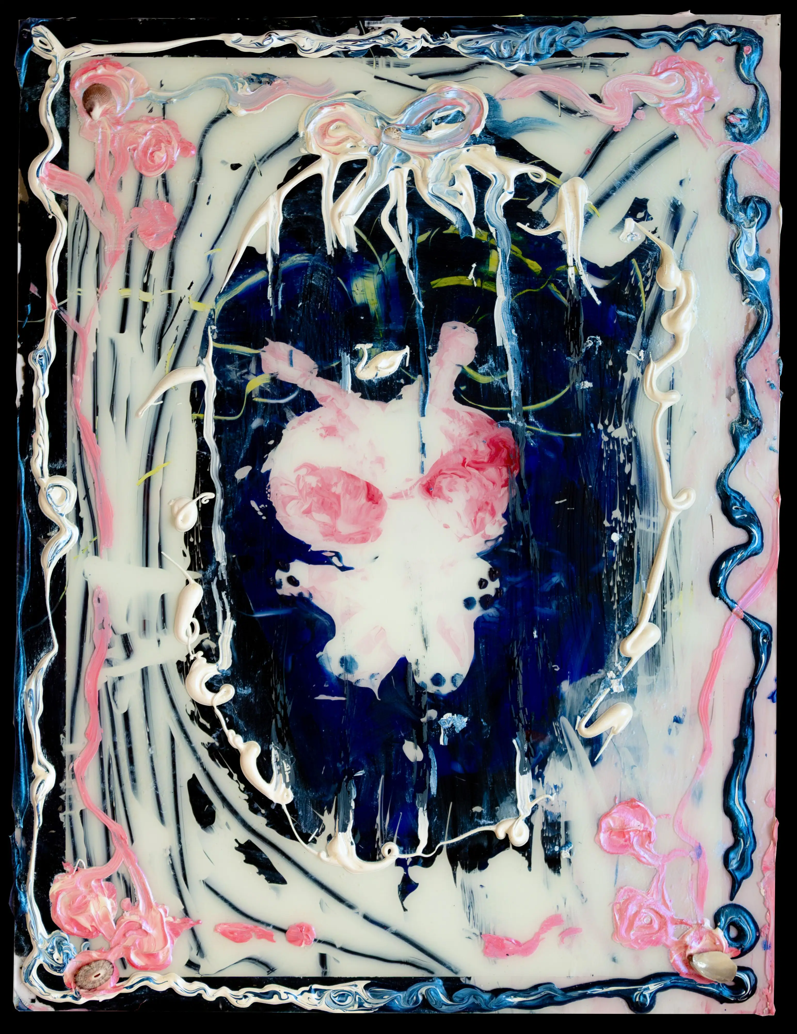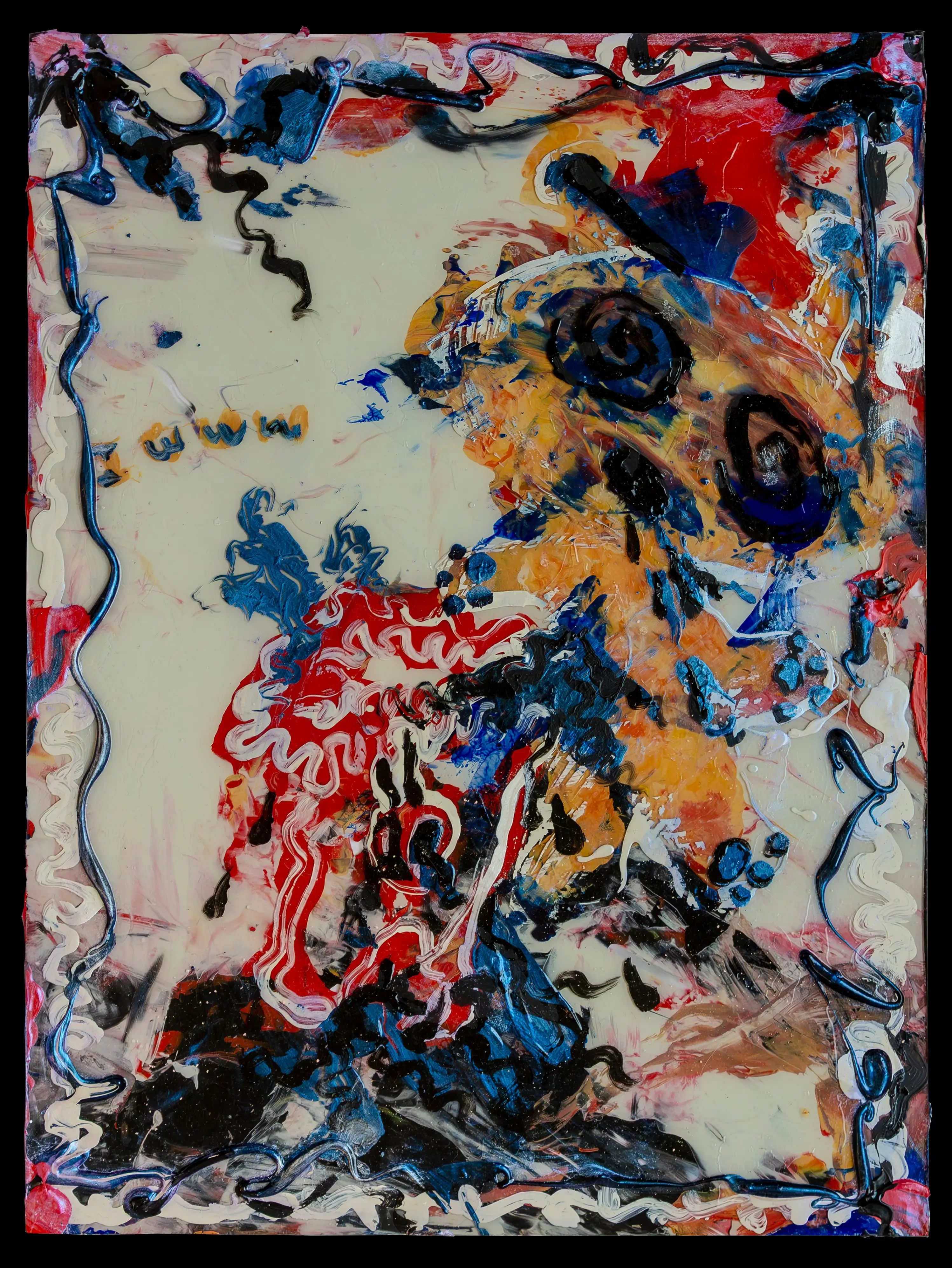 2025, porcelana fría y acrílico sobre vidrio. 30x40cm. foto y edición x Quin Francemuerto a la vida, a la muerte vivo