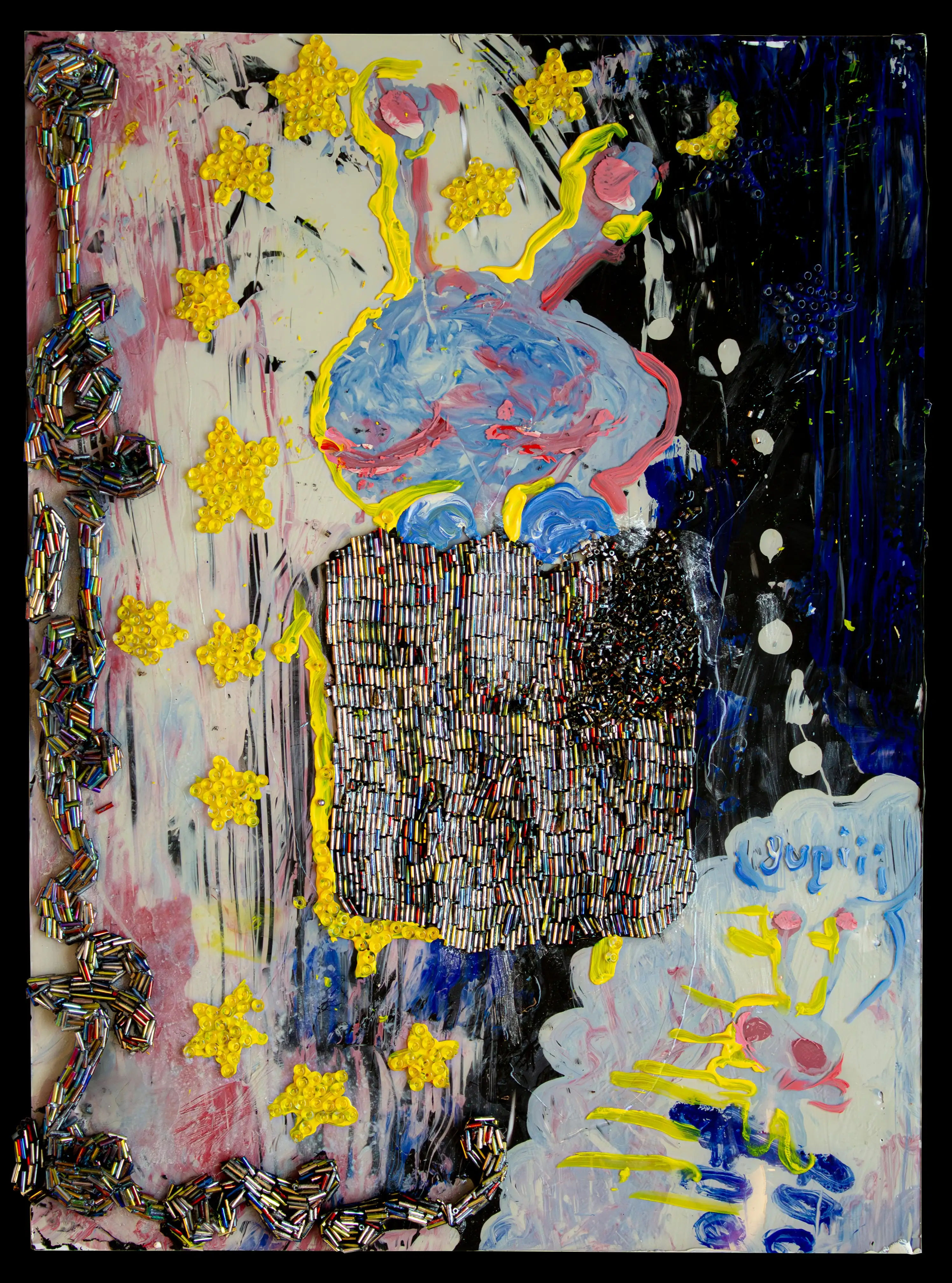 2025, acrílico y conchitas de maraccidente (aliens V)